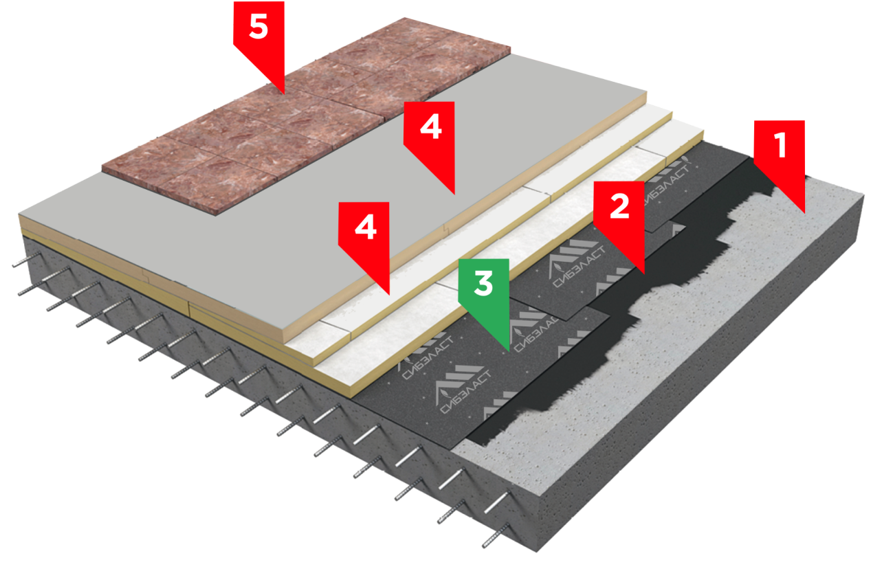 Применяют для устройства верхнего слоя гидроизоляции с защитой от солнечных лучей.