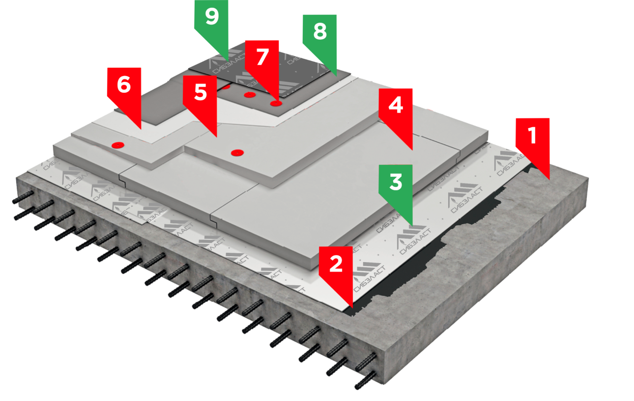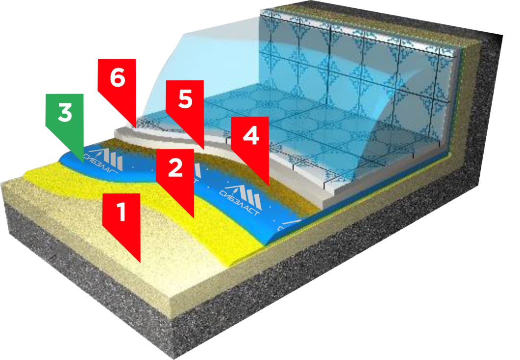 Используют для устройства нижних слоев в гидроизоляции/пароизоляции строительных конструкций (фундаментов, тоннелей, крыш и др.)